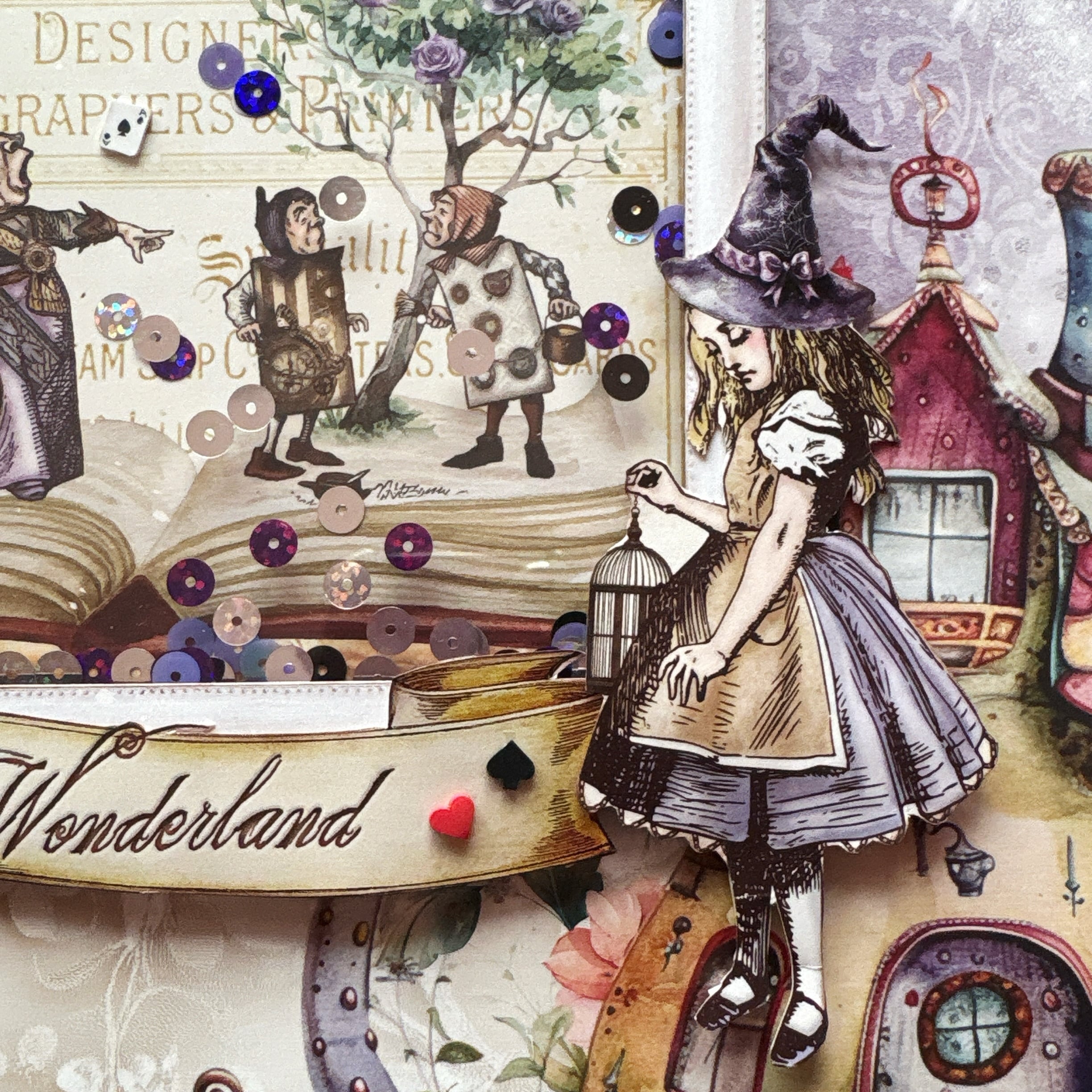 12インチペーパー8枚の他、チップボードや仕掛けに使うカット済みのペーパーやミニアクセサリ、スパンコールなどキット内容も盛りだくさんです。